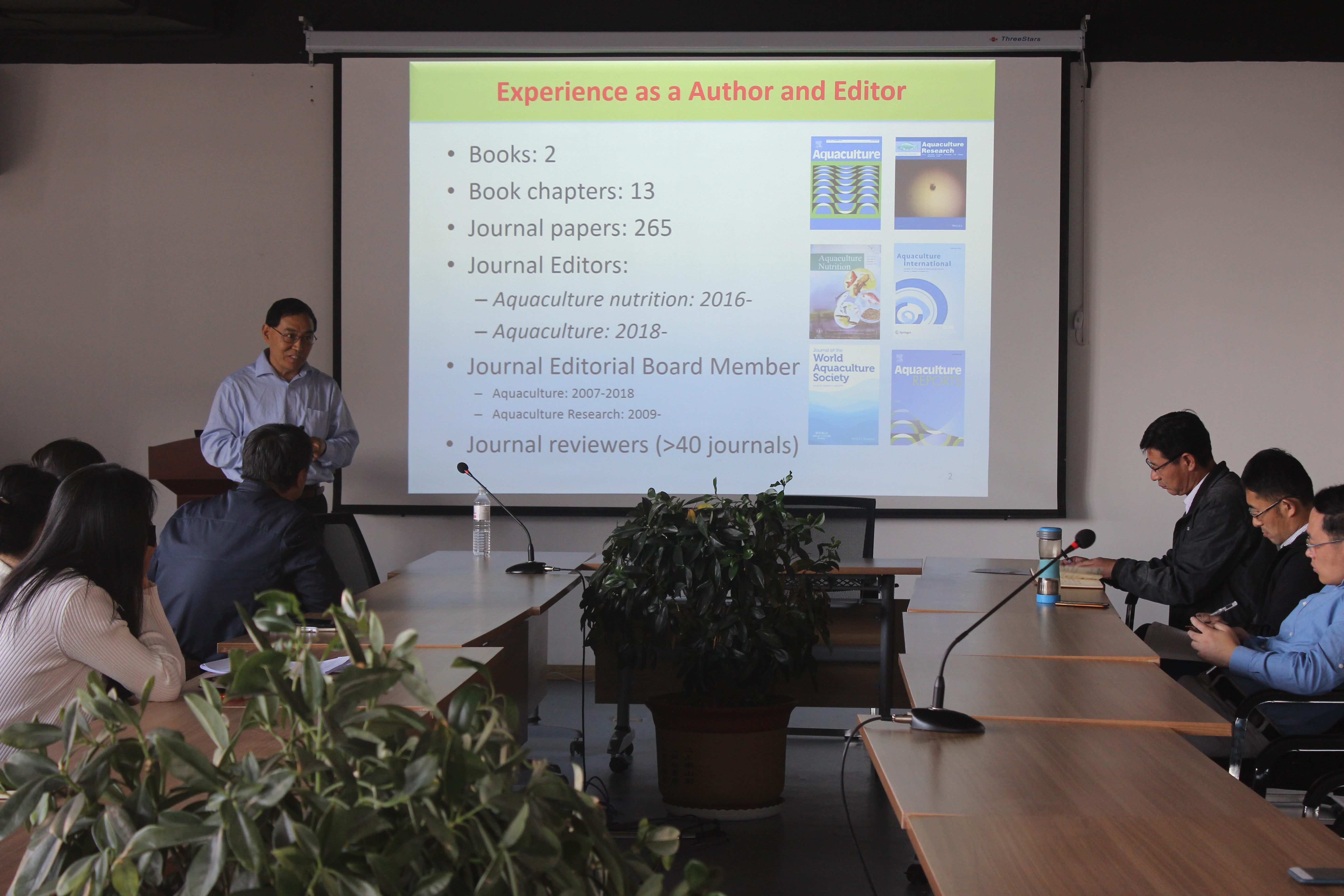 10月11日,青岛农业大学海洋科学与工程学院于蓝谷校区会议室举行学术报告会,澳大利亚费林德斯大学终身教授秦建光就水产养殖专题研究进行学术交流,学院全体教职工及研究生参加会议。