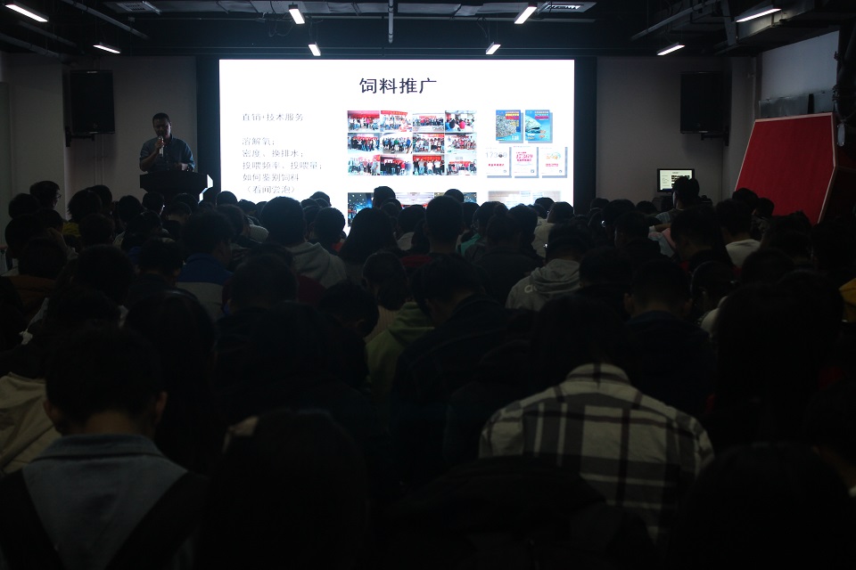 肖林栋以“我的水产情缘”为题,通过PPT形式讲述七好公司发展历程以及在大菱鲆、石斑鱼、对虾饲料的研究、推广和水产产业现状等基本情况。最后,他结合自身经历,对同学们的大学生活提出指导性建议,他鼓励同学们珍惜大学生活,勤于锻炼身体,努力学习专业知识,不断提升情商,全面提高自身综合素质。