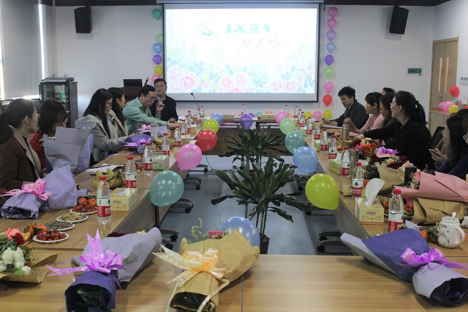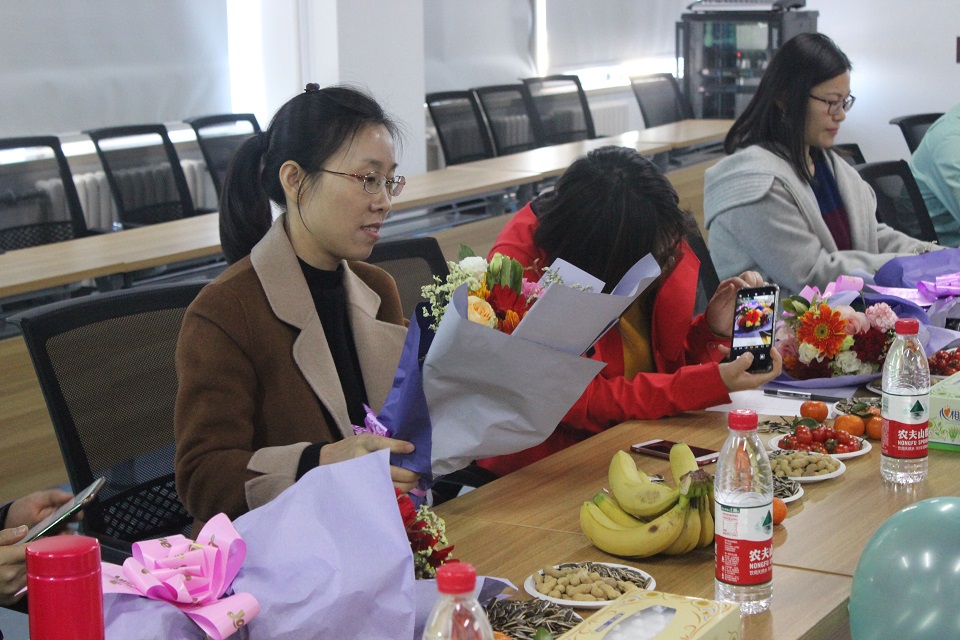 学院提前准备好瓜果、饮料,精心制作了花团、气球、彩带点缀整个会议室。学院党总支书记孙丙高、党总支副书记、副院长刘兴华、副院长李超、院长助理任贻超、辅导员焦鹏飞来到现场,为全体女教师送上了的色彩斑斓的鲜花和衷心的祝愿。孙丙高高度评价了学院女教师勤恳敬业、无私奉献的高尚品德和务实进取、开拓创新的精神风貌,希望大家在未来的日子里能够一如既往的支持学院的工作,妥善处理好事业、家庭、工作、生活等各方面关系,促进自身和学院的全面发展。刘兴华表示,女教师作为妻子和母亲,为家庭做出了巨大贡献;作为教师,为国家的人才培养和科研攻关贡献力量,值得每个人的尊敬与感恩。