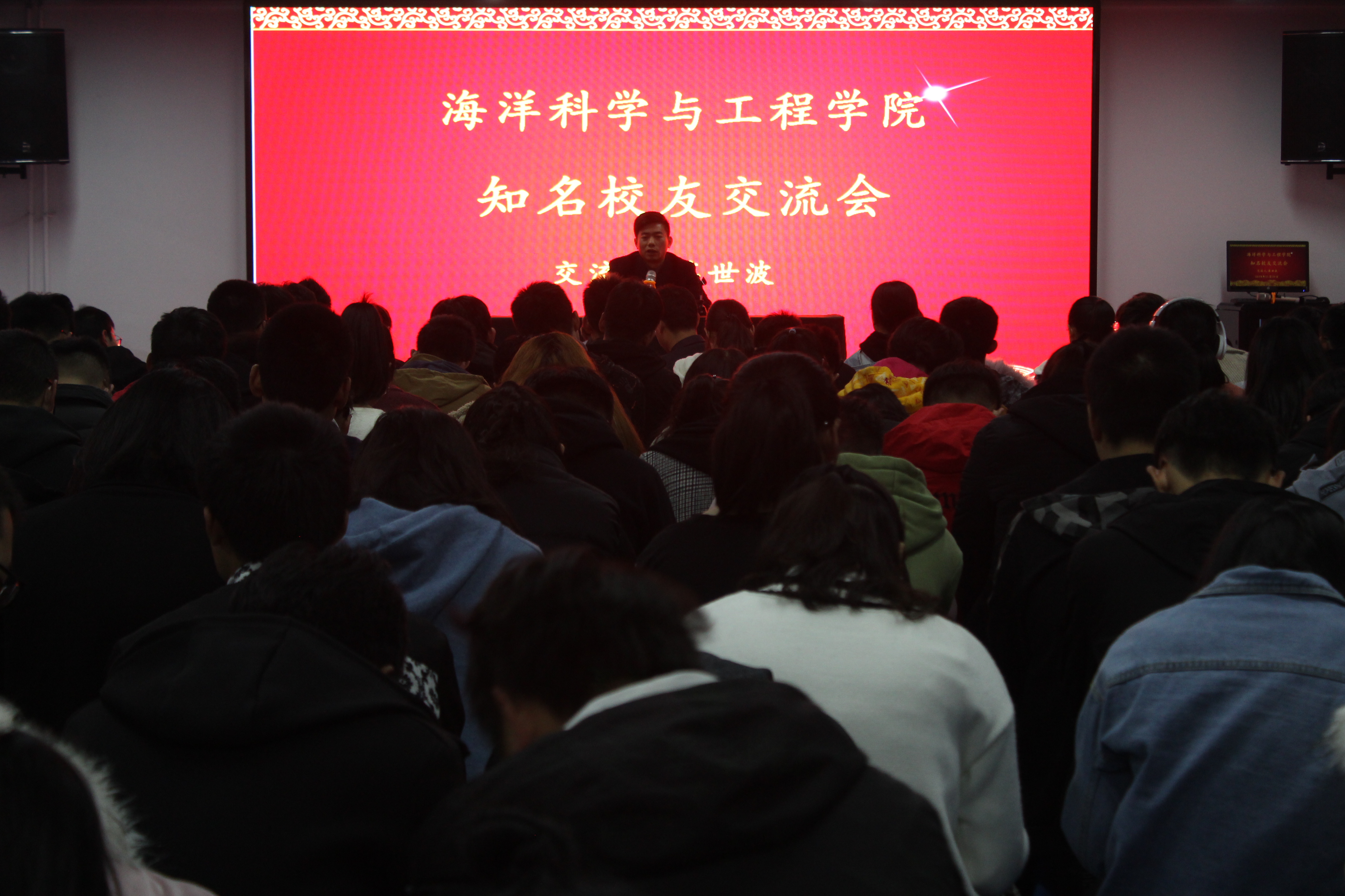 11月20日,青岛农业大学海洋科学与工程学院于蓝谷校区大学生活动中心举办知名校友交流会,水产养殖学2011届优秀毕业生蒋世波与同学们分享成长心得,党总支副书记刘兴华出席交流会,学院2018级同学参加。