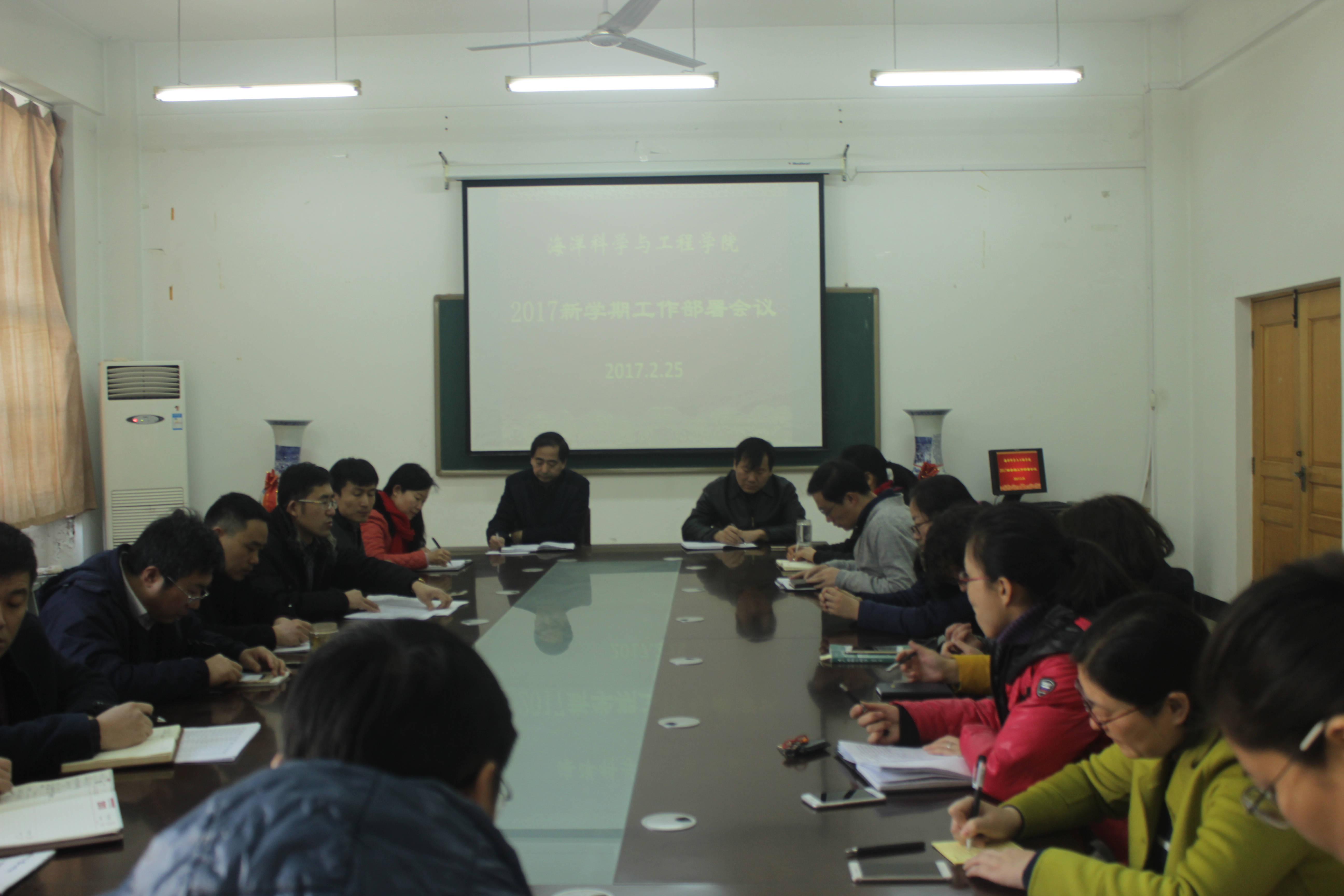 2月24日,海洋科学与工程学院在学院会议室召开新学期工作会议,对新学期的工作进行了全面部署和安排。会议由学院党总支书记潘庆杰主持,人事处处长兼海洋学院院长周顺及全体教师参加会议。
