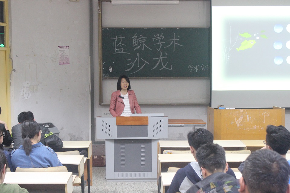 此次学术沙龙以“揭秘水生动物”为主题展开。来自水产养殖基础教研室的郭恩棉老师的主要研究方向是组织胚胎学和分子生物,她进行了海洋生物种群遗传、水生动物繁殖以及胚胎发育方面的研究报告,并以PPT的形式向同学们详细介绍了种群遗传学、水生动物组织学以及水生动物胚胎发育研究三个方面的知识。同时,郭老师向同学们说明了尽早选择蓝鲸导航工程导师的重要性,建议大家要尽早进入老师的实验室,根据自己的兴趣爱好确定发展方向,从事自主创业或者科学研究。