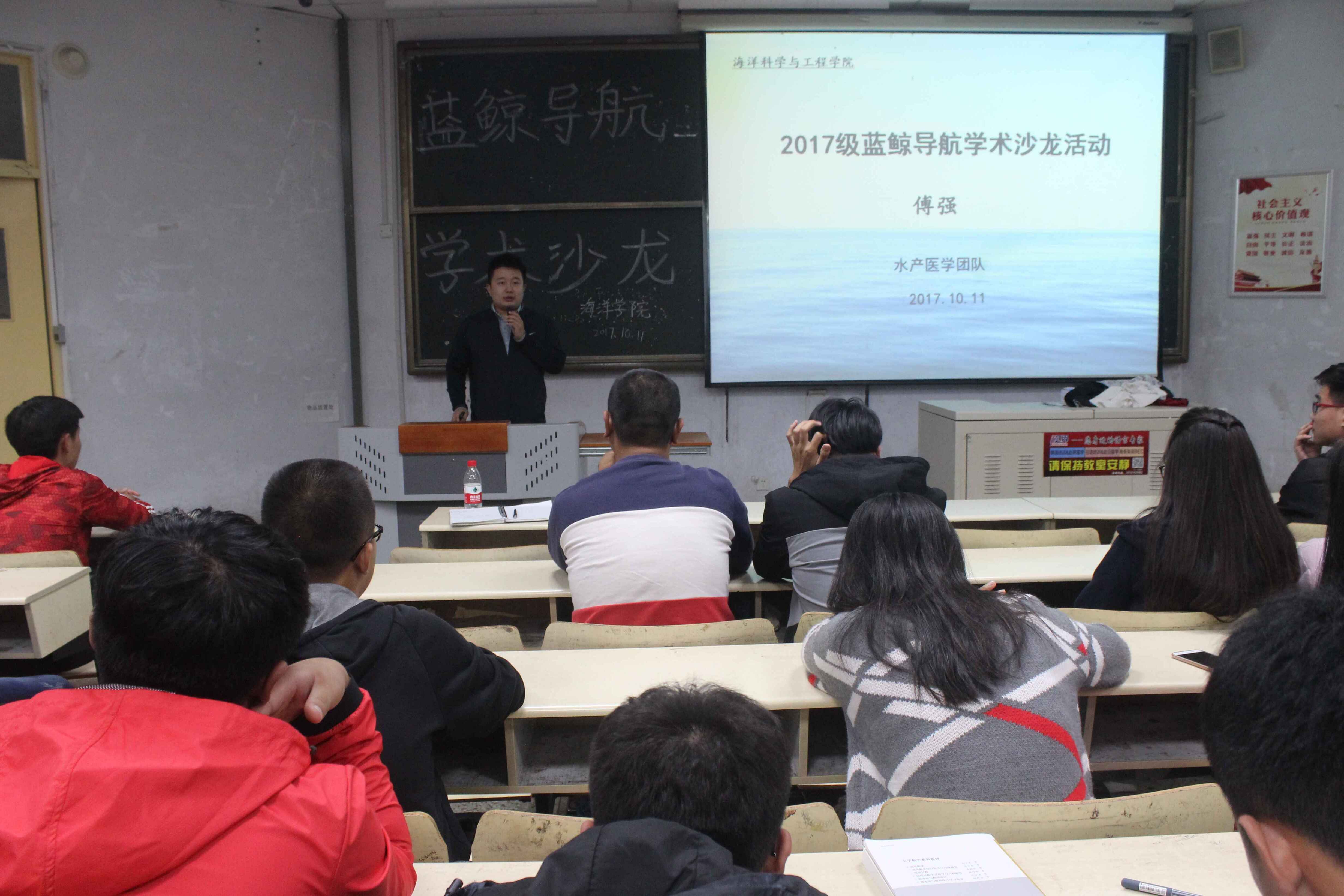 10月11日,海洋科学与工程学院于教学区B104举办第十八期蓝鲸学术沙龙活动,学院优秀教师傅强、路允良应邀参加此次活动。