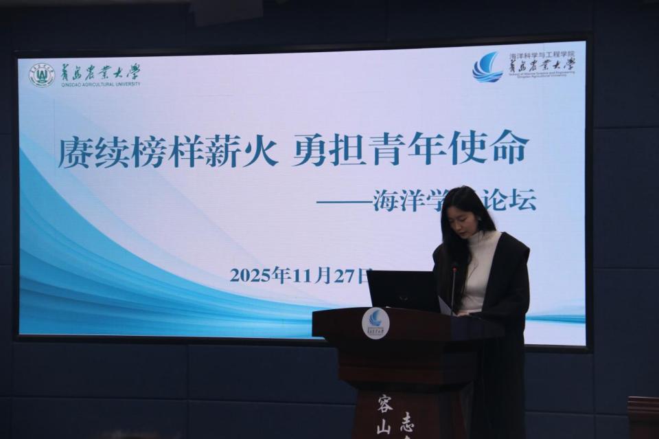 会上,集体观看了管华诗院士的采访视频。水族科学与技术专业2023级2班团支书赵心如作为学生代表进行分享,并提出三点倡议:一是立“向海图强”之志,将个人理想融入国家与人类事业。我们要以管华诗院士等前辈为榜样,树立开发蓝色国土、服务海洋强国的远大志向,让青春在贡献人类健康的事业中绽放光彩。二是筑“交叉融合”之基,在学科的边界地带寻求创新突破。我们要主动打破专业壁垒,积极进行跨学科交流,用更广阔的视野和更丰富的知识储备,迎接新时代海洋探索的挑战。三是行“知海爱海”之实,做海洋生态的坚定守护者。我们要坚持开发与保护并重,自觉成为海洋保护的宣传者和实践者,用行动证明我们既是海洋资源的开发者,更是蓝色家园的忠诚守护者。
