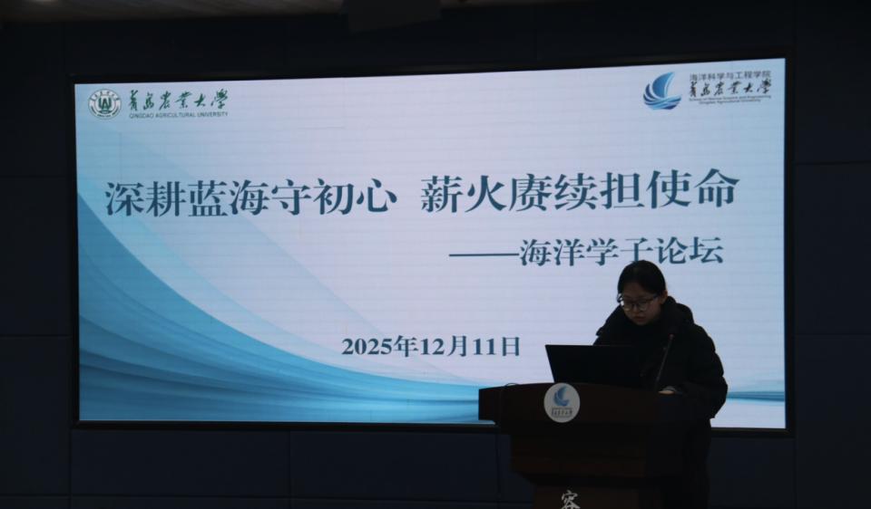 论坛以“深耕蓝海守初心,薪火赓续担使命”为主题。期间,集体观看了杨士莪院士的专题采访视频。水生2301班王亚文作为学生代表分享,并提出三点倡议。一是要坚定“向海图强”的理想信念。将个人的学业追求与海洋强国战略紧密结合,摒弃浮躁心态,沉下心来学好专业知识,明确“为何学、为谁学”,让青春的方向与国家的需求同频共振。二是要养成“潜心钻研”的学习习惯。主动打破专业壁垒,关注学科交叉领域,以更全面的知识储备应对海洋探索的挑战。三是要扛起“护海爱海”的责任担当。要树立生态保护意识,积极宣传海洋保护理念,做蓝色家园的守护者,让海洋资源能够可持续利用。