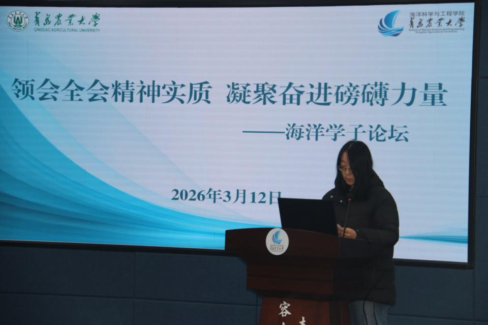 论坛以“领会全会精神实质,凝聚奋进磅礴力量”为主题。论坛期间,大家集体观看了党的二十届四中全会的相关视频。水养2301班葛佳伟作为学生代表发言,并围绕信仰、担当与务实三个维度发出倡议:一是要领悟全会精神,坚定“乱云飞渡仍从容”的信仰之基。要把个人的理想追求融入到党和国家的事业之中,争做信念坚定的“栋梁才”。二是要贯彻全会精神,激发“攻坚克难敢为先”的担当之勇。要将斗争精神转化为攻克专业难题的钻研劲头,转化为投身乡村振兴社会实践的服务热情。三是要落实全会精神,锤炼“知行合一做实事”的务实之风。要反对“躺平”心态,拒绝“佛系”生活,把全会描绘的宏伟蓝图,转化为我们一份份优异的成绩单、一次次扎实的社会实践、一步步健康的成长轨迹。