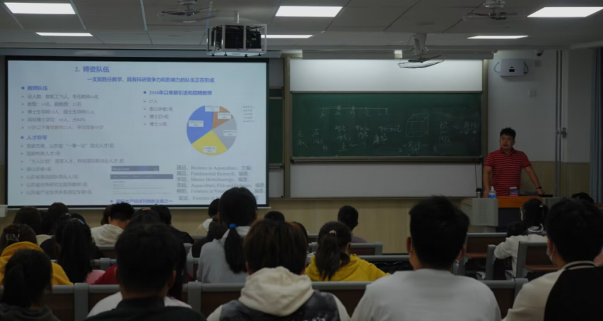 10月4日,海洋科学与工程学院于平度校区D201、D202教室召开本科专业介绍会。会议邀请海洋资源与环境专业负责人陈伟、夏斌以及水生动物医学负责人傅强、柳阳作为主讲,2022级相关专业学生参加。