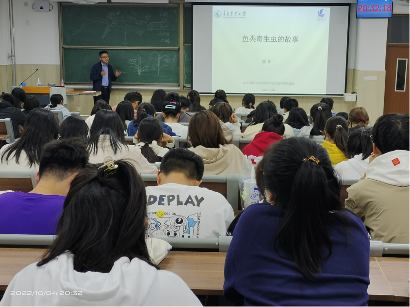 宣讲会上,专业负责人分别从专业培养目标、办学条件、专业研究与建设、主要成果、就业方向等方面向同学们作了详细地讲解。陈伟教授巧妙运用现实中的例子阐明了环境保护的重要性和迫切性,激发同学们的对专业的兴趣,增强了同学们保护海洋的责任感和使命感。夏斌强调,大国崛起,海洋意识必须觉醒,优秀的教学条件与教学设施体现出国家对人才的培养与学校对教育的重视。作为新时代青年,更要坚定海洋强国的信念,为实现中华民族伟大复兴做出自己的贡献。柳阳以《鱼类寄生虫的故事》为例,深入浅出地为同学们介绍了寄生虫学实验室的基本情况,通过讲述异育银鲫寄生洪湖碘泡虫的生活史研究过程,让同学们初步迈进科研的大门。最后,傅强讲述了专业的发展方向和前沿科技,鼓励同学们做理论知识丰富、实践动手能力强、身心健康的新时代大学生。除此之外,老师们纷纷寄语同学们,希望同学们能够珍惜未来四年短暂又充实的大学时光,认真学习,努力奋斗,实现自己的理想。