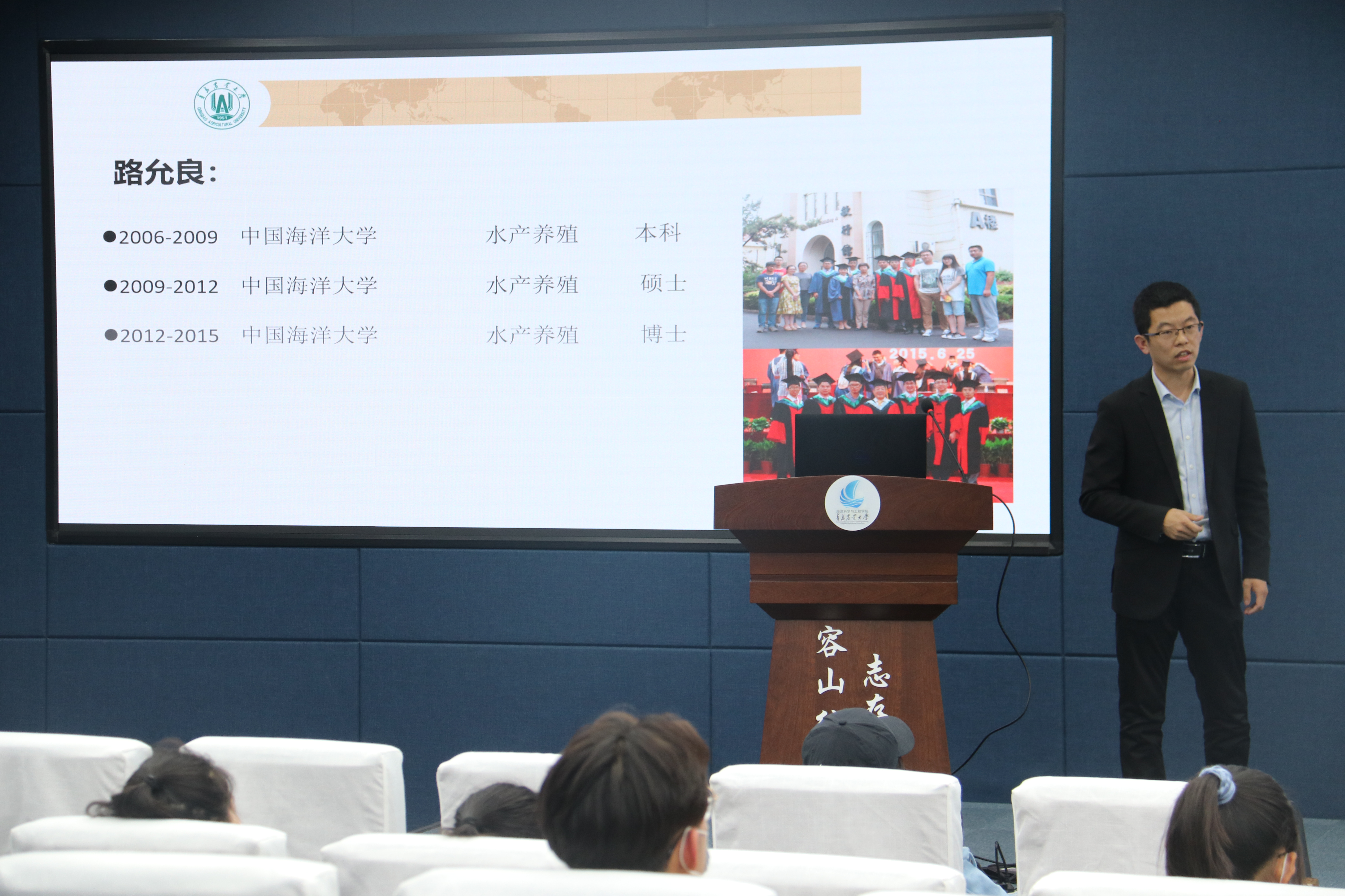 11月12日,青岛农业大学海洋科学与工程学院于蓝谷校区报告厅举办“蓝鲸导航学术沙龙”活动。活动由海洋学院学术部组织,邀请海洋学院路允良老师就“水产动物生理生态学研究”作主题报告,大一部分同学参加。