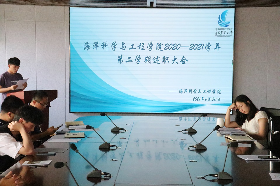 为梳理和总结海洋科学与工程学院学生会2020-2021学年第二学期的工作,全面提高学生会工作质量,总结过去的经验和不足,以更加饱满的工作热情服务广大同学。6月30日,海洋学院于蓝谷校区会议室举行2020-2021年度学生会总结述职报告大会。学院辅导员出席,学院主要学生干部参加。