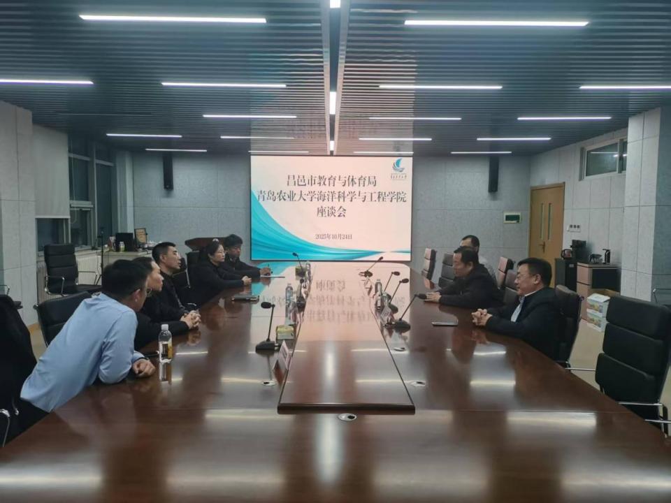 10月24日,山东潍坊昌邑市教育与体育局局长陆振伟一行到海洋科学与工程学院调研交流。海洋学院党委书记张国利,党委副书记、副院长刘兴华、水产养殖系主任王国栋等参加座谈会,座谈会由张国利主持。