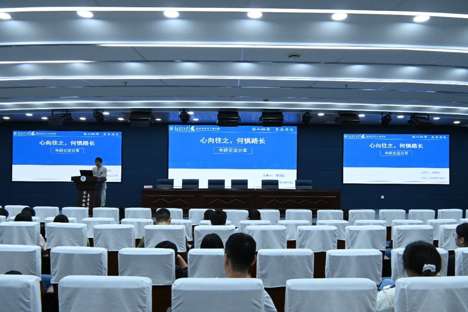 在经验分享环节,学院邀请了目前在读的研一学生代表林海宁、博士研究生代表邓雨杭与大家交流心得。他们结合自身经历,倾囊相授,分别从考研笔试的科目复习方法、时间规划、心态调整,到复试的准备技巧、面试礼仪、联系导师注意事项,再到攻读博士学位期间的科研心路、课题选择、学术素养培养等方面,分享了宝贵的一手经验和实用建议。学长学姐们真诚而恳切的分享,极大地增强了在场同学备战考研的信心,也让大家对未来的科研生活有了更具体、更生动的认知。