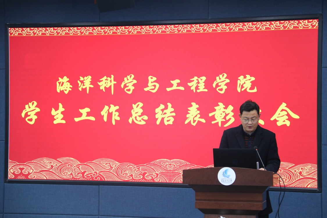 海洋学院党总支书记孙丙高作《海洋科学与工程学院2019—2020学年学生工作总结报告》,主要围绕“1234”学生工作模式的探索实践,影响学生工作高质量发展的因素和下一阶段学生工作的着力点三个方面,对过去一年来海洋学院学生工作进行了全面总结,分析不足并指出今后努力方向。孙丙高指出,学院在融入陆海统筹,建设海洋强国的历史洪流中迎来了不可复得的历史机遇,学院将紧紧围绕立德树人使命,坚持以学生为本,不断开拓创新,砥砺奋进,为建设优势突出、特色鲜明的高水平大学贡献力量。