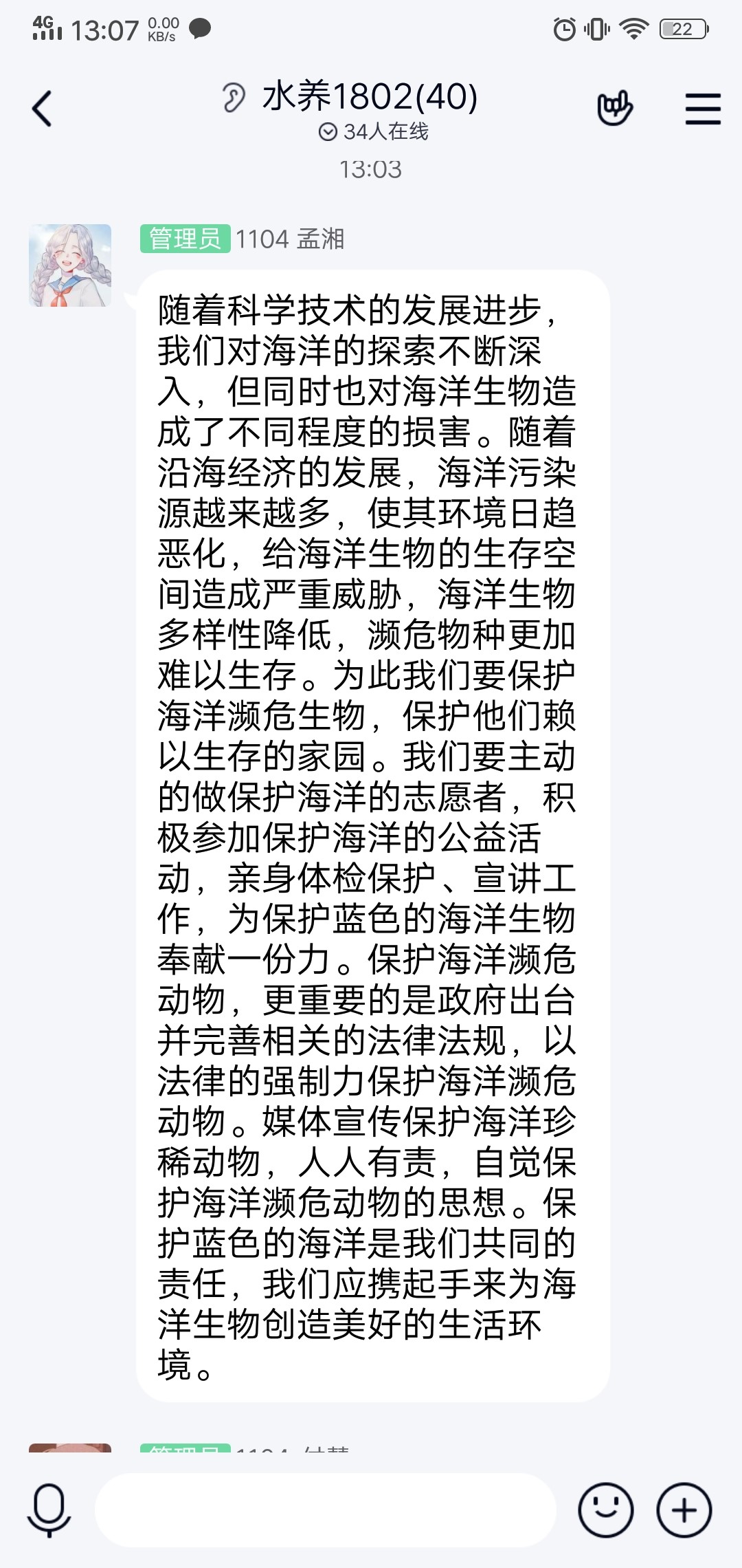 海洋生物与人类息息相关,海洋生物的多样性也同样对人类的生产、生活有非同寻常的重要意义。为了增强人们对海洋濒危动物的保护意识,青岛农业大学海洋科学与工程学院水产养殖学专业2018级2班全体同学于7月20日开展了以“海洋濒危动物”为主题的暑期社会实践活动。随着人类认识的深入,海洋生物多样性对人类的生存和发展的影响日益明显。特别是近些年来,随着环境恶化程度的加深及自然灾害频发,保护海洋生物多样性被放在人类发展的重要战略地位。为了人类更好地生存和发展,保护海洋生物多样性就需要得到人们的重视。