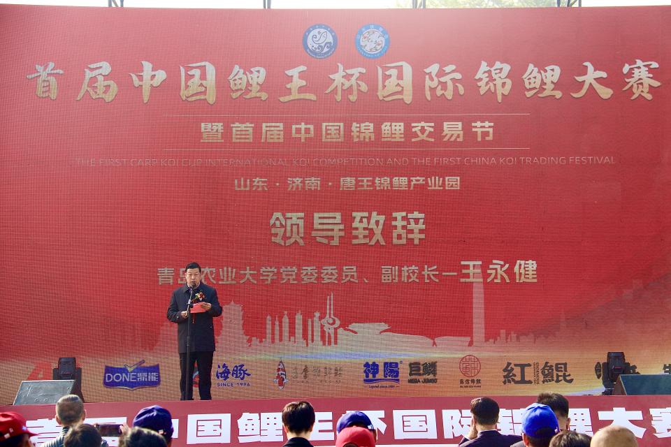 在大赛开幕式上,王永健代表学校致辞,对大赛的成功举办表示热烈祝贺,向长期以来关心支持学校建设发展的各位领导和嘉宾们表示衷心的感谢。王永健强调青岛农业大学愿进一步加强与行业内优秀企业、科研机构的交流与合作,特别是在人才培养、技术研发、品种培育等方面深化合作,共同为提升中国锦鲤产业的国际竞争力、促进渔业转型升级和高质量发展贡献更多的“青农大”力量。