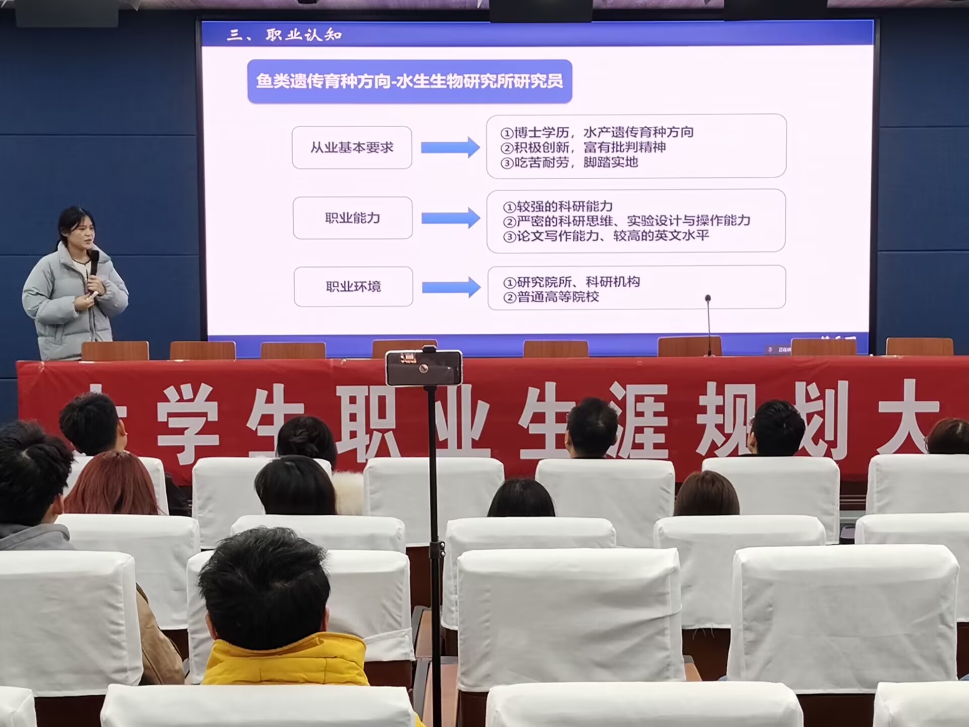 本次大赛分为团队自我介绍、项目PPT视频展示、5分钟现场答辩三个环节。选手们从自我认知、职业环境分析、职业目标确定、评估与调整几个方面尽情展示了自己的职业规划,充分展现了当代学子朝气蓬勃的精神风貌和锐意进取的新形象。参赛者言辞流利,自信不疑,讲述自己过往历程、未来规划和职业目标,清晰明确,志气高昂。经过激烈角逐,来自2020级水生动物医学专业的聂诚凭借自信流利的表达、生动形象的演绎夺得本次比赛的一等奖,田君、钱丹丹、于润获得二等奖,姜玟婷 、刘乃婧 、刘佳仪 、王一诺获得三等奖。