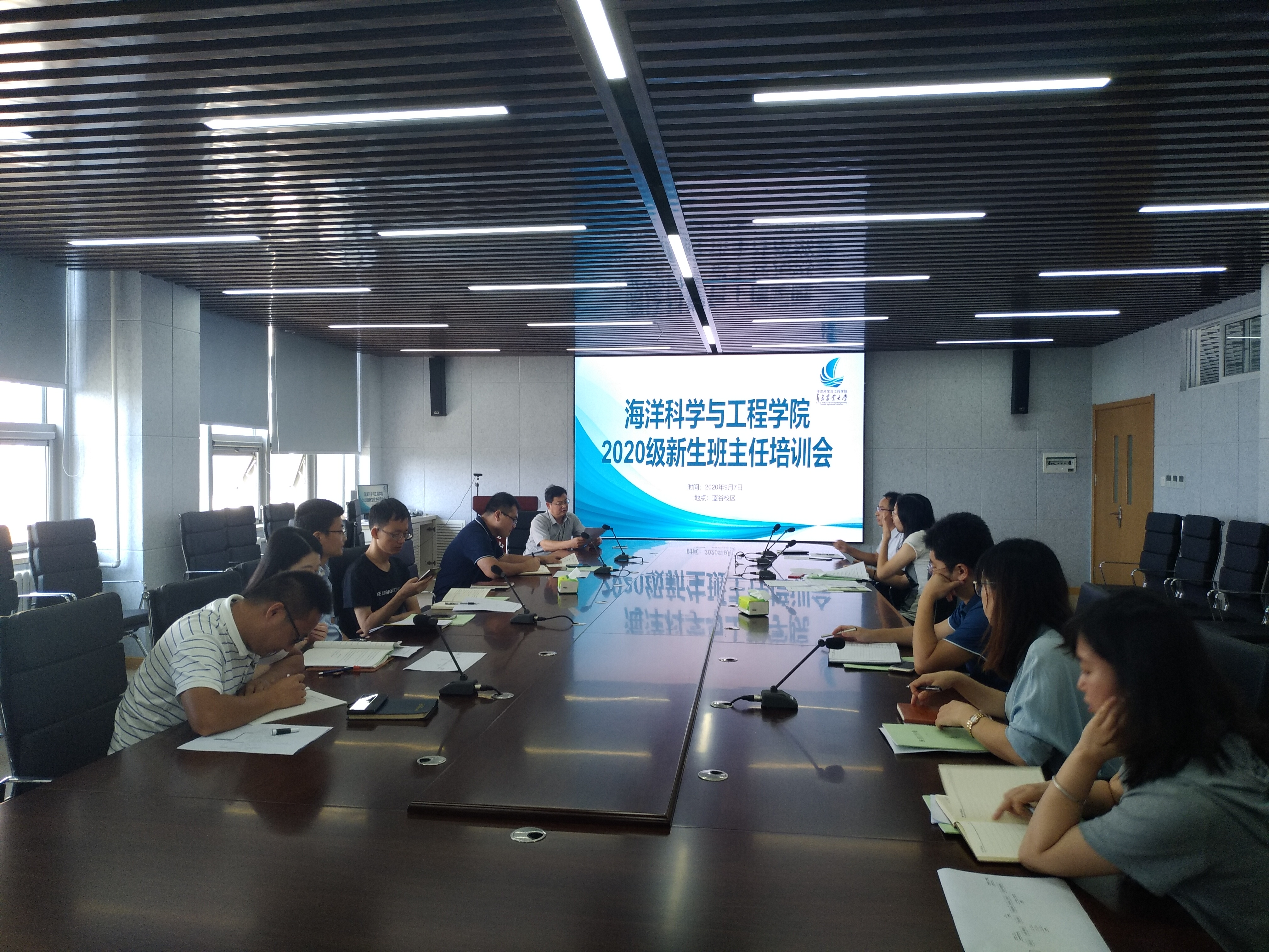 为进一步加强班主任队伍建设,帮助新生班主任尽快掌握开展大学生思想政治教育的基本方法,更好的迎接2020级新生的到来。9月7日,青岛农业大学海洋科学与工程学院于蓝谷校区会议室召开2020级新生班主任培训会。会议由党总支书记孙丙高主持,全体新生班主任、学院部分教师参加。