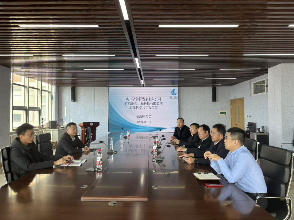 11月5日,海洋科学与工程学院邀请海南省海洋发展有限公司、青岛炬荣工程科技有限公司相关负责人到访学院,举行产学研合作座谈会。学院党委书记张国利、党委副书记、副院长刘兴华、副院长李玉全、院长助理任贻超、陈京华老师、慕鹏飞老师出席会议,围绕智慧渔业技术研发与成果转化开展深入交流。