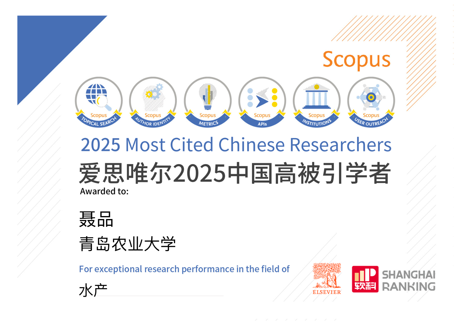 1月30日,爱思唯尔(Elsevier)正式发布2025“中国高被引学者”(Highly Cited Chinese Researchers)榜单。海洋科学与工程学院院长聂品教授荣登该榜单。