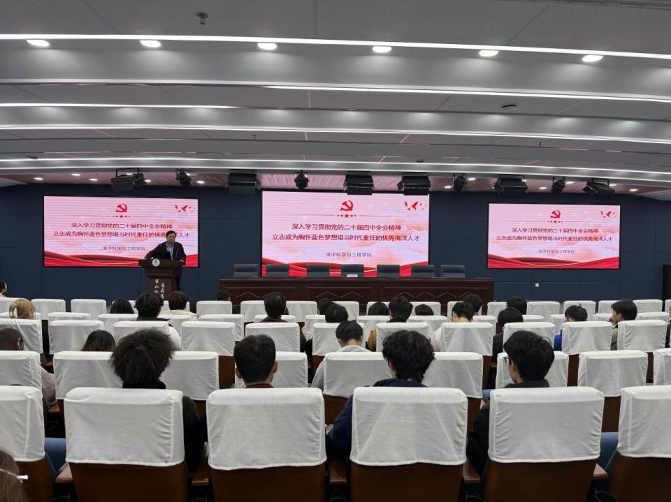 宣讲会上,张国利以《深入学习贯彻党的二十届四中全会精神 立志成为胸怀蓝色梦想堪当时代重任的优秀海洋人才》为题,围绕党的二十届四中全会召开背景、重大意义、核心内容和战略部署等进行了讲解。