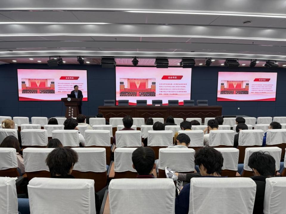 为深入学习贯彻党的二十届四中全会精神,进一步增强“四个意识”、坚定“四个自信”、做到“两个维护”,10月30日,学院党委书记张国利在蓝谷校区206报告厅面向学院学生干部宣讲党的二十届四中全会精神,学院党委副书记、副院长刘兴华主持宣讲会,全体学生干部参加。