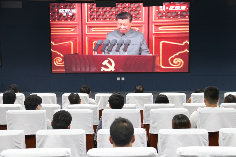 感悟思想伟力,汇聚前进动力。7月1日,庆祝中国共产党成立100周年大会在北京天安门广场隆重举行,海洋学院党总支高度重视,精心组织,教师和优秀学生代表在蓝谷校区报告厅集中观看庆祝大会,海洋学院学生通过网络、手机等渠道观看现场直播,积极参与、共同学习。海洋学院师生党员、共青团员共同学习习近平总书记重要讲话精神,时刻牢记“以史为鉴,开创未来”的使命,深刻感悟中国共产党始终不渝为人民的初心宗旨,塑造海院人特有的精神气质,昂扬向上、朝气蓬勃的姿态庆祝建党100周年。