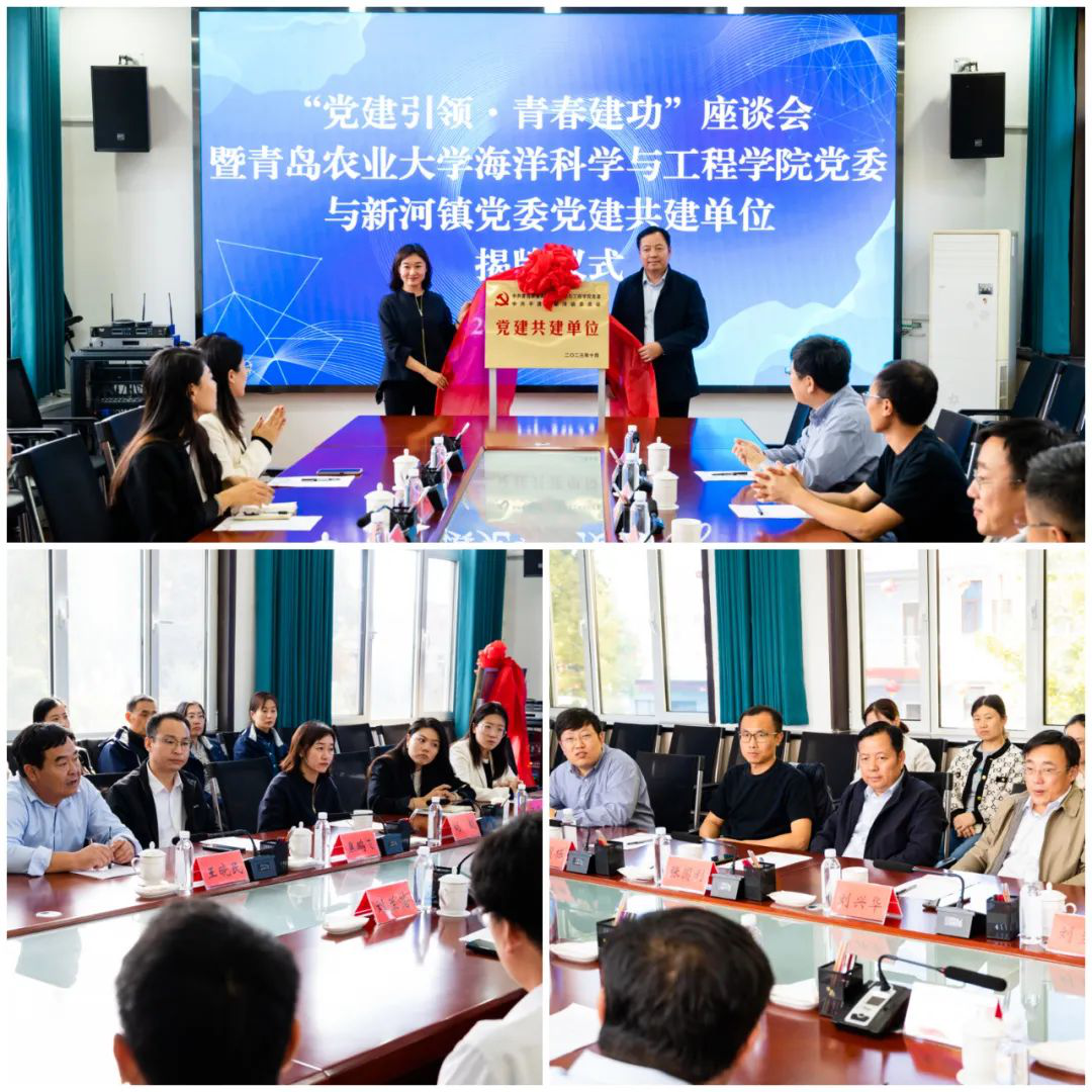 在本次联学联建活动中,学院与新河镇开展了“党建引领·青春建功”座谈会暨党建共建揭牌仪式。海洋学院党委书记张国利与新河镇党委副书记、镇长刘毅共同为党建共建单位揭牌,双方还围绕水产养殖领域产学研合作进行了座谈交流。学院教师们对养殖企业关于水产养殖技术、养殖密度、养殖环境污染控制等方面进行了专业指导,细心解答了养殖户关于亚硝酸盐超标引起鱼虾中毒、水质底质改良等问题,就下一步合作进行了探讨。