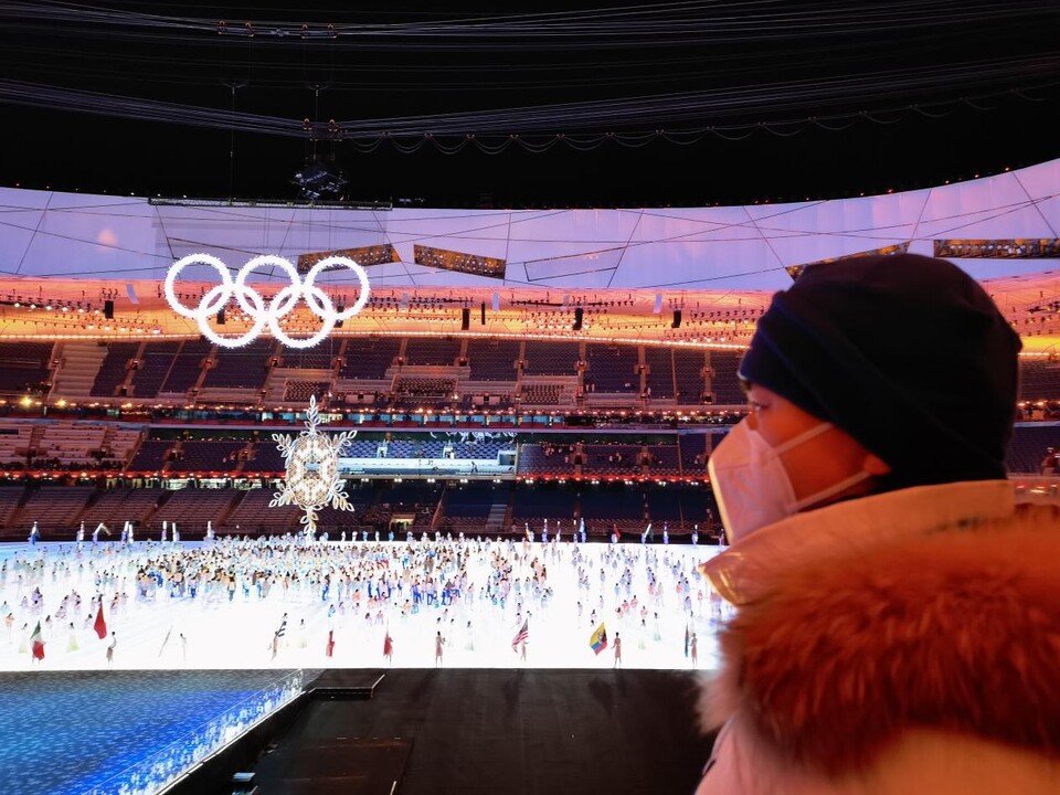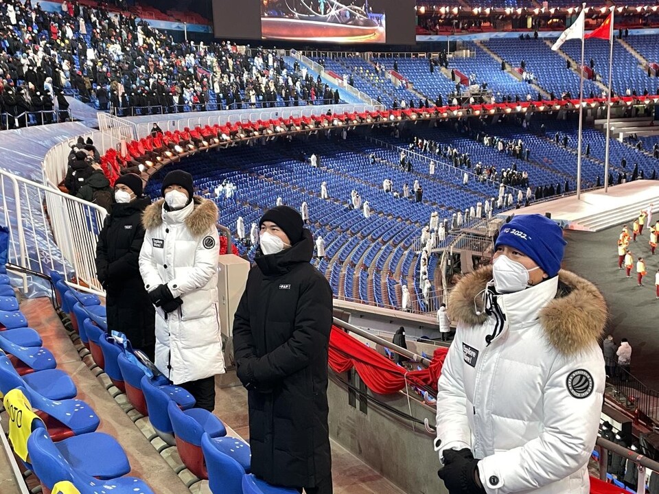 曹阳阳(右一)作为志愿者负责冬奥会场安保工作