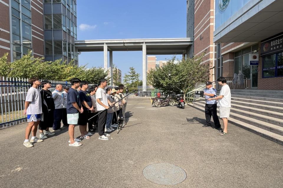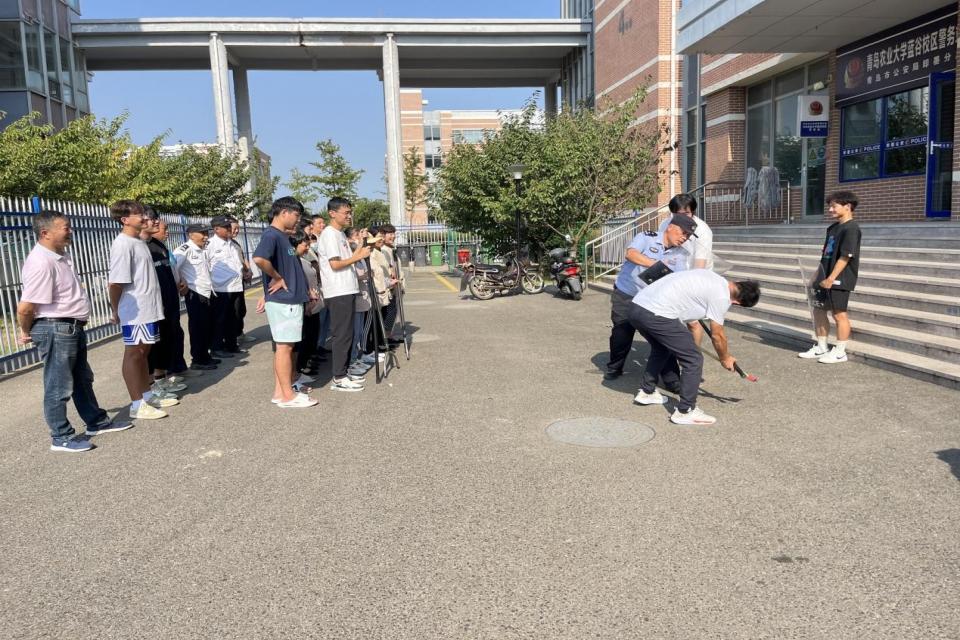 为进一步筑牢校园安全防线,提高应对校园暴恐事件的应急处置能力,营造安全和谐的校园环境,9月25日,青岛农业大学蓝谷校区联合青岛市公安局海岸警察支队岙山派出所组织开展防暴演练活动,由民警董清指挥讲解。蓝谷校区管理办公室、海洋科学与工程学院、后勤物业及餐厅共计30余名人员参与演练活动。