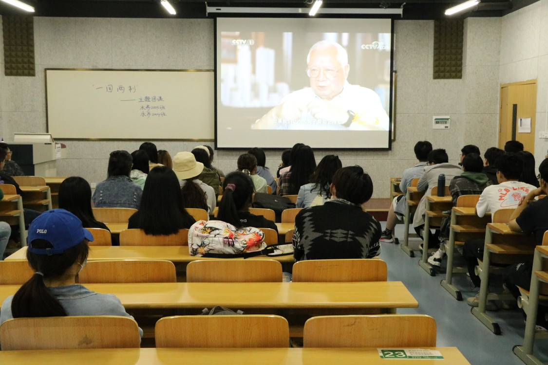 在各班团支书的组织下,同学们观看了视频《一国两制之风雨40年》。视频讲述了内地与港澳、大陆与台湾在“一国两制”的制度下携手走过的风雨40年。“一国两制”不仅解决了中国遗留的历史问题,完成了统一大业,还维护了中国的主权、安全和发展利益,将制度优势全面转化为国家治理效能,为实现“两个一百年”奋斗目标和中华民族伟大复兴的中国梦提供了有力保证。在接下来的发展中,中国将继续坚持“一国两制”的方针,并在此基础上进一步巩固和深化港澳同胞同全国各族人民“命运共同体”意识,构建和谐中国。