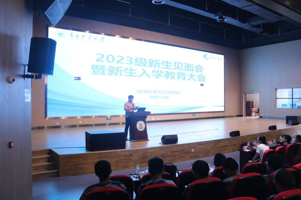 9月16日,为了让大一新生更快的适应大学生活,更好的融入集体,海洋科学与工程学院于平度校区创业中心报告厅举办2023级新生见面会暨新生入学教育大会。学院党委书记张国利,党委副书记、副院长刘兴华、副院长李超等出席了见面会,各系主任、新生班主任及辅导员参加了会议。会议由学院团委书记李琳主持。