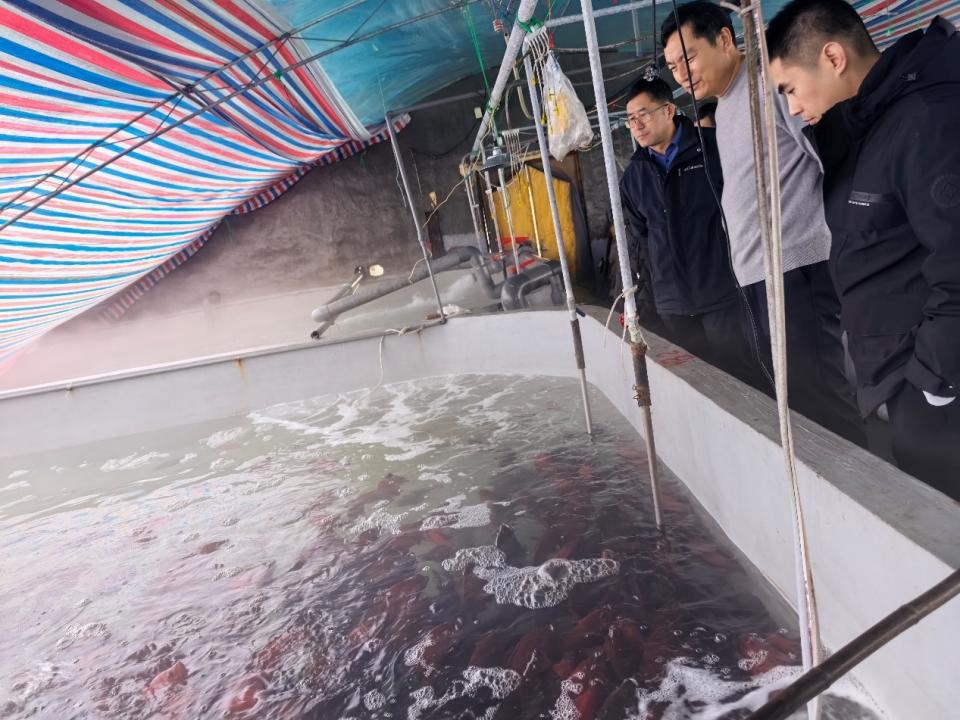 在任勇陪同下,李玉全一行深入企业养殖车间,实地考察了东星斑、红瓜子斑的工厂化养殖情况,并参观了企业为实习学生配套的宿舍及食堂。