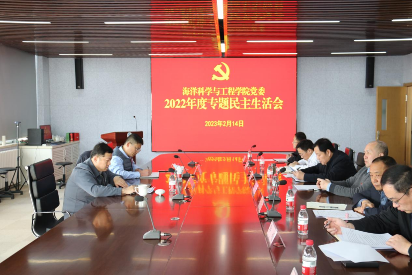按照校党委部署要求,2月14日,海洋科学与工程学院党委召开了2022年度党员领导干部专题民主生活会。副校长王永健、校纪委(监察专员办公室)案件管理室主任刘平到会指导,学院党委领导班子成员参加会议。会议由学院党委书记张国利主持。