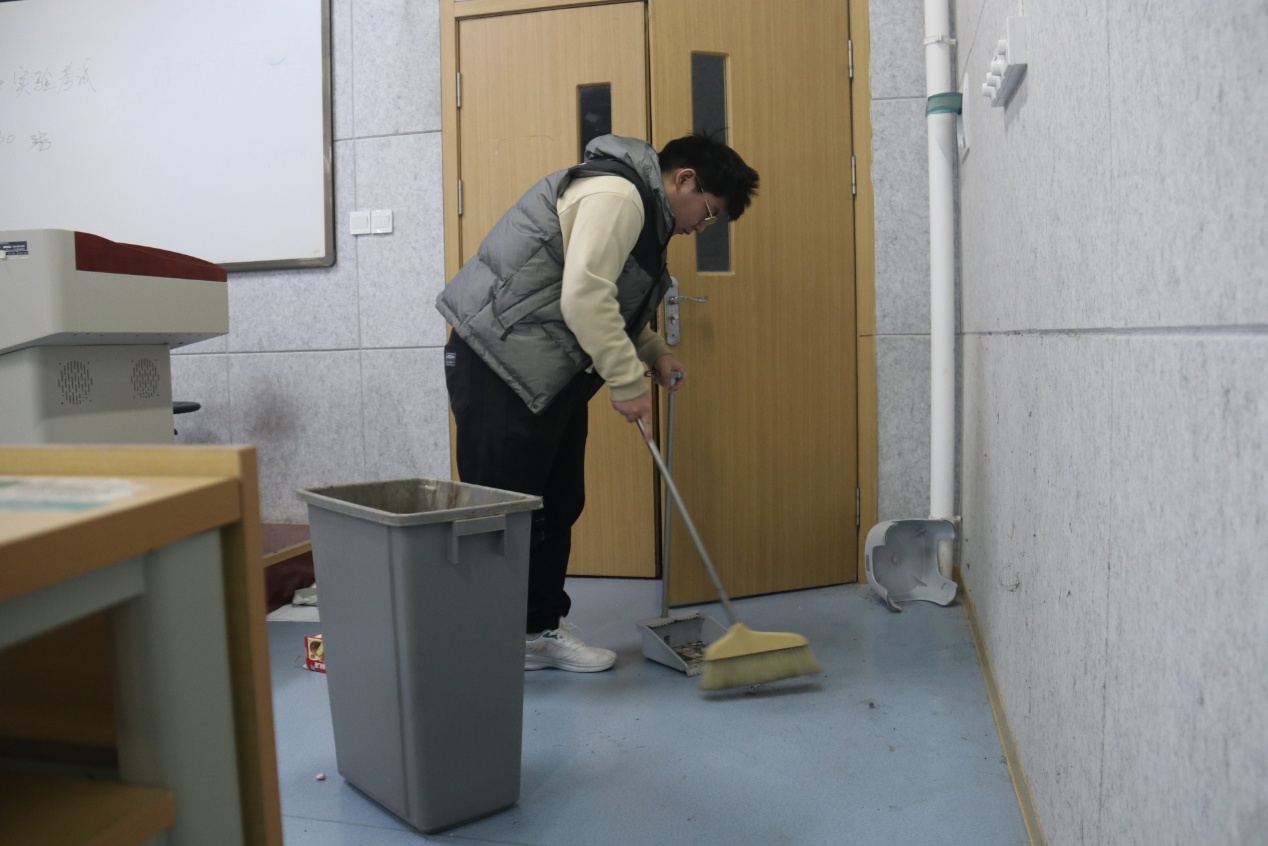 活动中,同学们分组协作,手持清洁工具,对学院各公共教室进行了全面细致的清扫。大家分工明确、配合默契,逐一擦拭黑板与桌椅,清理地面纸屑杂物,整理散落的学习资料,并对卫生死角进行彻底清除。部分同学还主动归置教学设备、整理书籍资料,使教室面貌焕然一新。劳动过程中,同学们热情饱满,展现了不怕脏、不怕累的奉献精神和团结协作的集体意识。经过共同努力,教室环境变得窗明几净、桌椅整齐,为师生的教学与学习创造了更加舒心的环境。