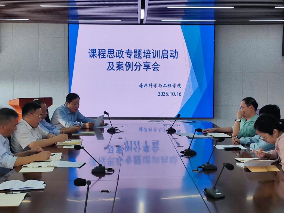 为落实立德树人根本任务,深入推进课程思政建设,提升教师课程思政教学能力,10月16日,海洋科学与工程学院召开课程思政专题培训启动及案例分享会。学院全体教职工参加会议,会议由学院党委书记张国利主持。