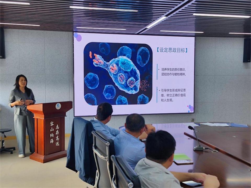 案例分享环节,学院郭恩棉教授以《课程思政-巨噬细胞》为题作教学案例分享。她结合海洋相关专业知识与巨噬细胞的生物学特性,从从案例设计思路、思政元素挖掘、教学实施路径及教学效果反馈四个维度展开讲解。通过“专业知识+思政元素”的有机融合,让学生在掌握专业理论的同时,潜移默化地树立家国情怀与科学素养,实现了专业知识教育与思想政治教育的有机统一、润物无声。郭恩棉教授的分享内容详实、视角新颖、启发性强,为在场教师提供了可借鉴、可推广的课程思政教学范式,赢得了阵阵掌声。